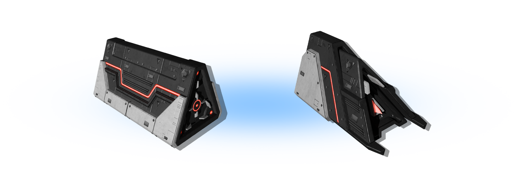 These decorative Atlas-themed modules can be affixed to the corvette exterior, furthering the ship’s devotion to the crimson entity.