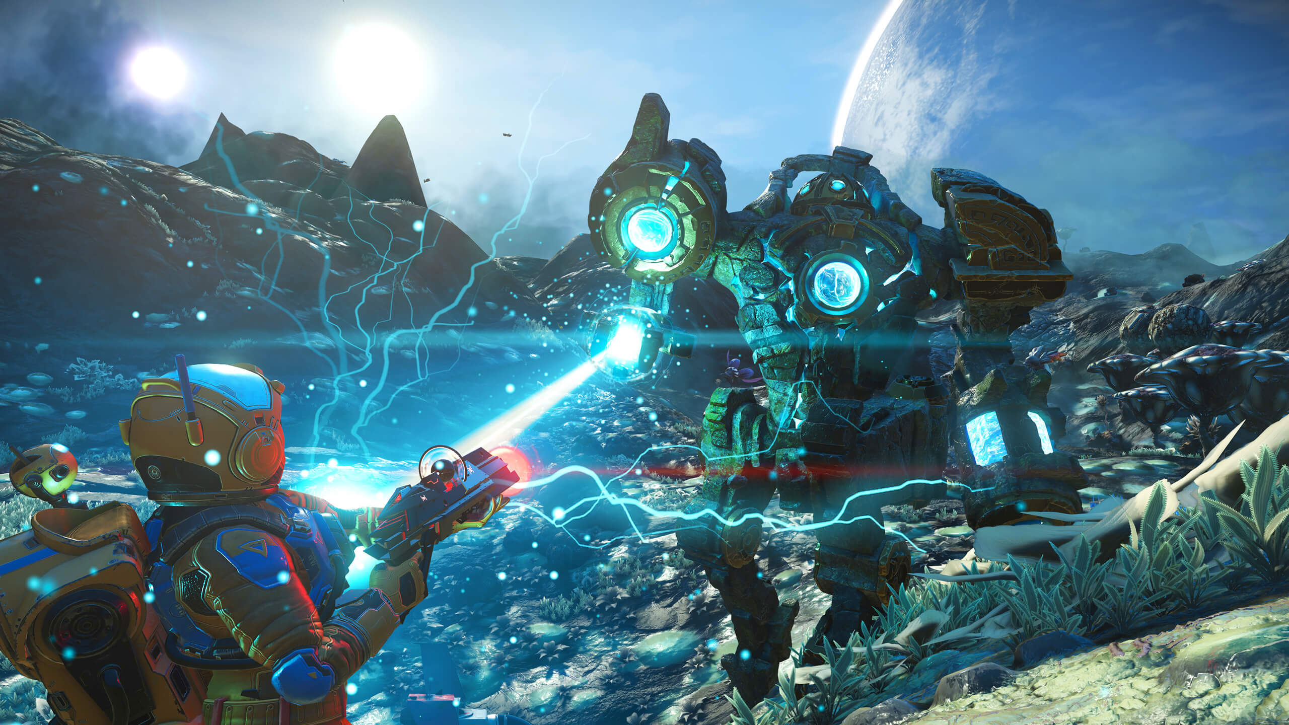 Playing in an abandoned universe has been streamlined and enhanced. Derelict space stations now contain functional upgrade stations for the Exosuit, starship, and Multi-Tool, as well as salvage boxes containing valuable upgrades. Travellers can scavenge further technologies from planetary buried caches, and purple systems are automatically visible on the Galaxy map.